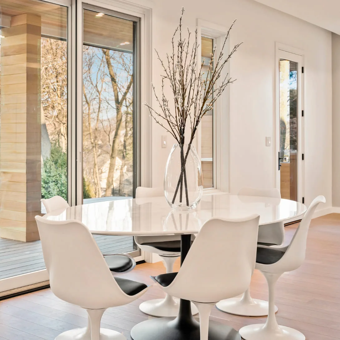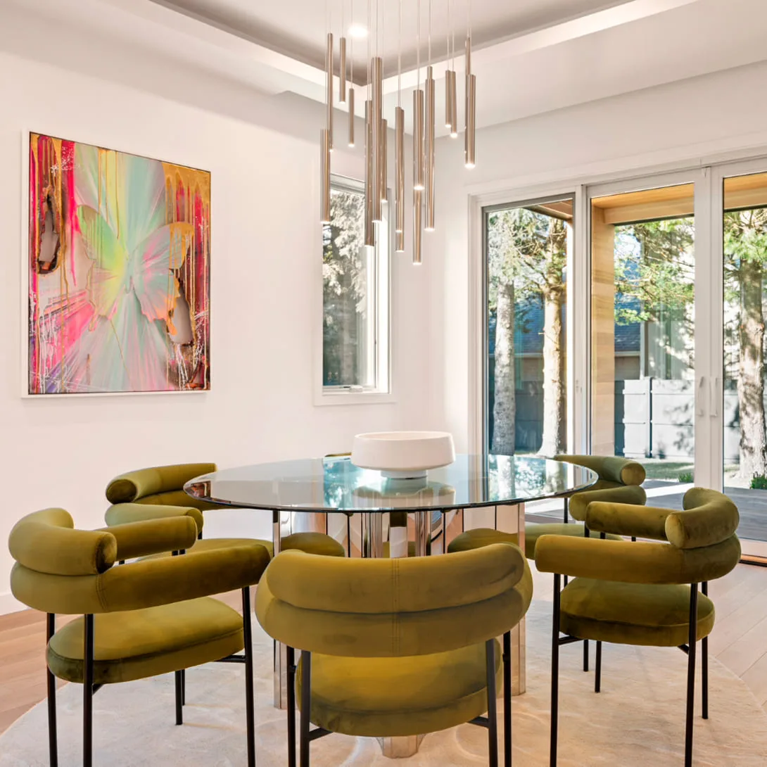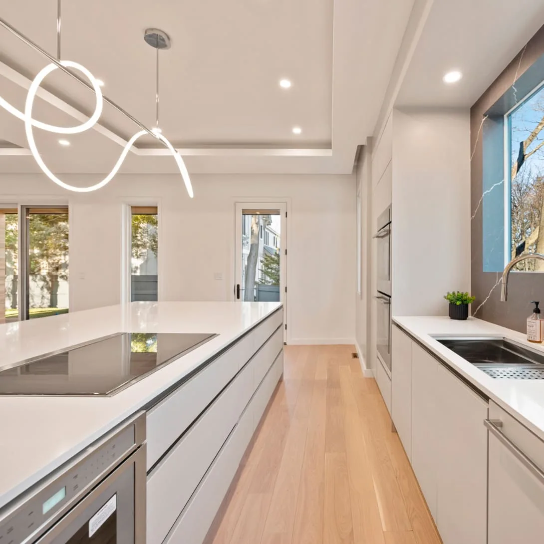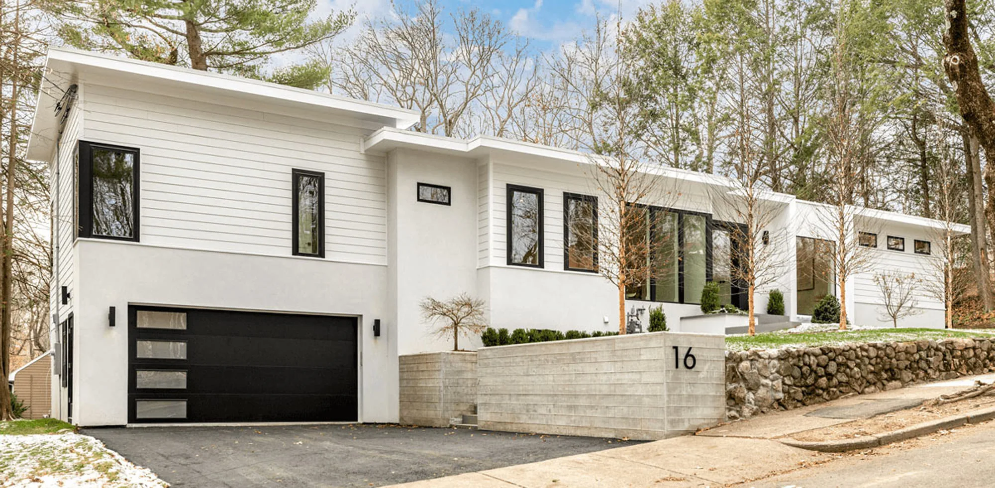 Pine Ridge Road – Newton, MA This residence is defined by bold architectural lines softened by an abundance of windows that flood every room with natural light. From the moment you step inside, the design story unfolds—beginning with a grand two-story foyer, an innovative floating staircase, and a living moss wall that sets the tone for the home’s modern elegance.