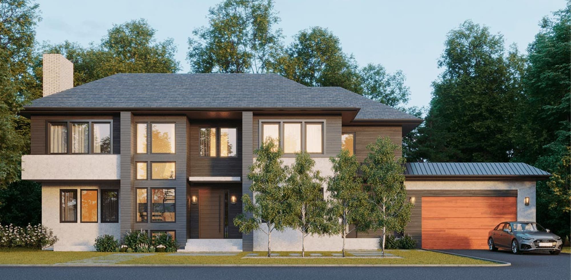 Waban Avenue – Newton, MA This 4,029-square-foot home is a showcase of contemporary design, with bold rooflines, stucco accents, and carefully placed windows that create striking curb appeal. Inside, we carried this modern aesthetic forward with a mix of materials, including cement tile flooring, built-in carpeting, and floating garden walls that bring a distinctive edge to the interiors.