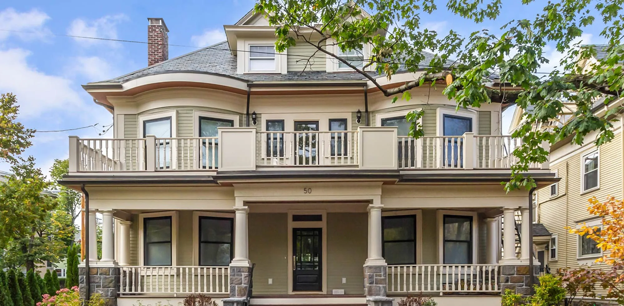 Outdoor spaces include multiple decks, a landscaped yard, and parking for four cars, with a detached heated two-car garage. Naples Road reflects our dedication to honoring historic architecture while creating sustainable, modern residences that meet the demands of contemporary living.